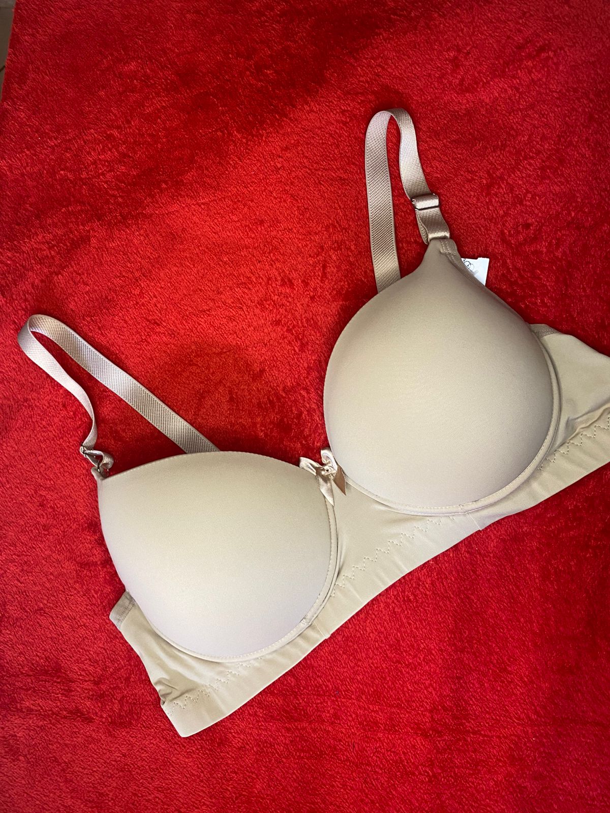 A peça possui bojo, pala de sustentação, corte decotado, arco de viés em plástico, alças reforçadas com regulagem de metal e fecho de colchete triplo com regulagem. É toda trabalhada em microfibra e possui um detalhe de laço em cetim na ponte.