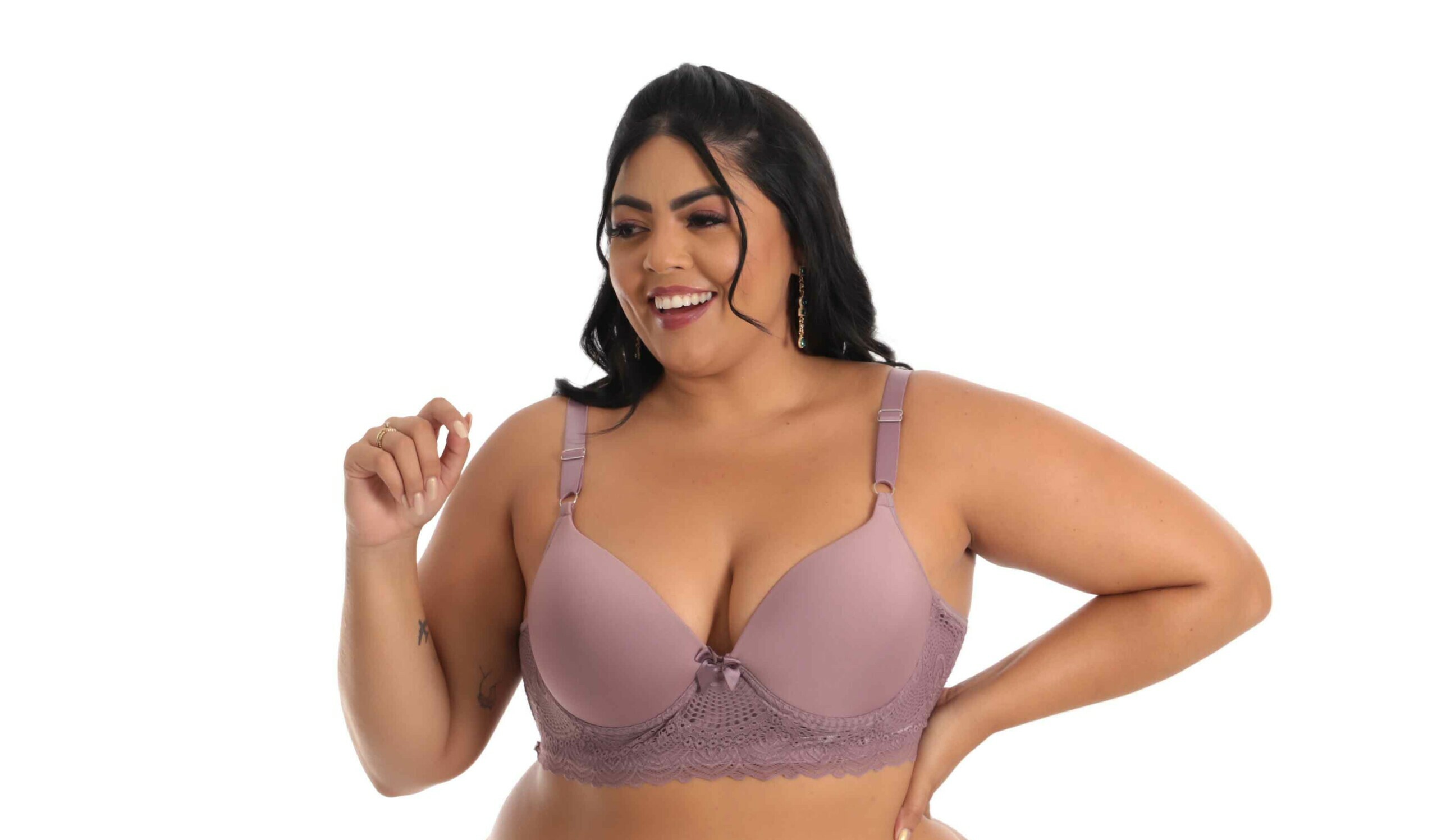 O Sutiã além de possuir aro de sustentação e alças reforçadas, contém regulagem em metal. Também conta com detalhe de renda abaixo do busto. O estilo de renda na peça pode variar.